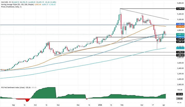 Valencia称,若金价收盘价跌破100日均线,将为金价进一步下探4600美元/盎司关口扫清障碍。若跌破该水平,下一个值得关注的支撑区域将是4月2日创下的日内低点4553美元/盎司,随后则是4500美元/盎司关口。