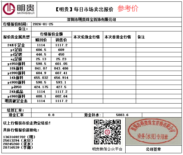 | 铑金 | -- | -- | -- | -- | -- |