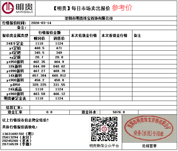 | 铑金 | -- | -- | -- | -- | -- |